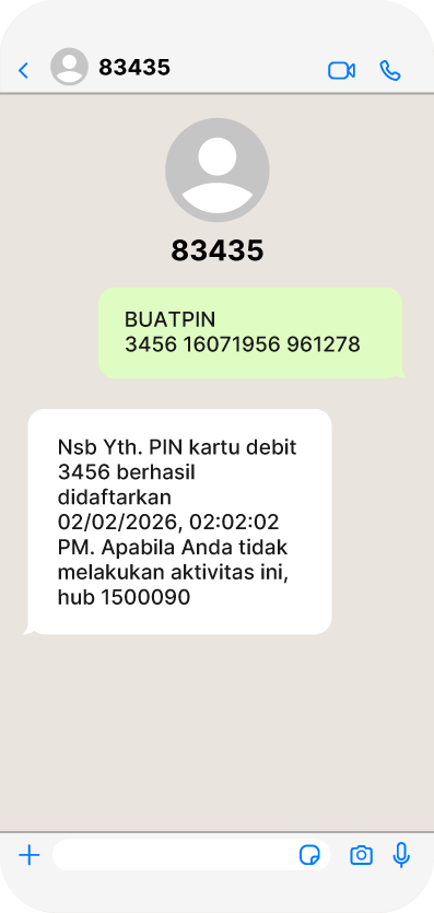 • SMS ke 83435 melalui nomor ponsel yang terdaftar di sistem Bank dengan format: