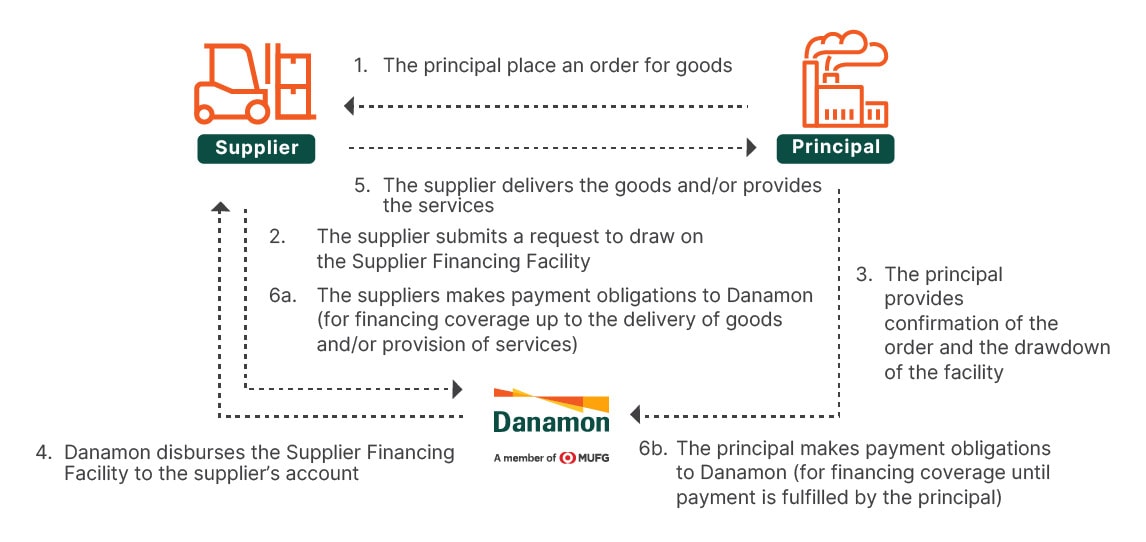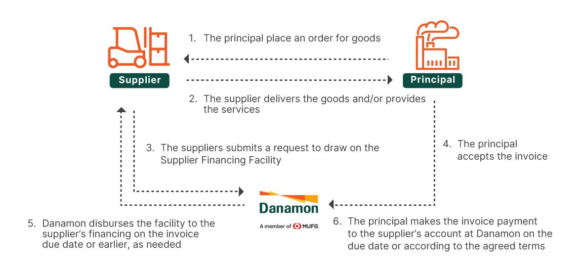 Danamon is committed to provide solutions through working capital support for selected Suppliers to ensure a steady supply of raw materials/services for the Principal.