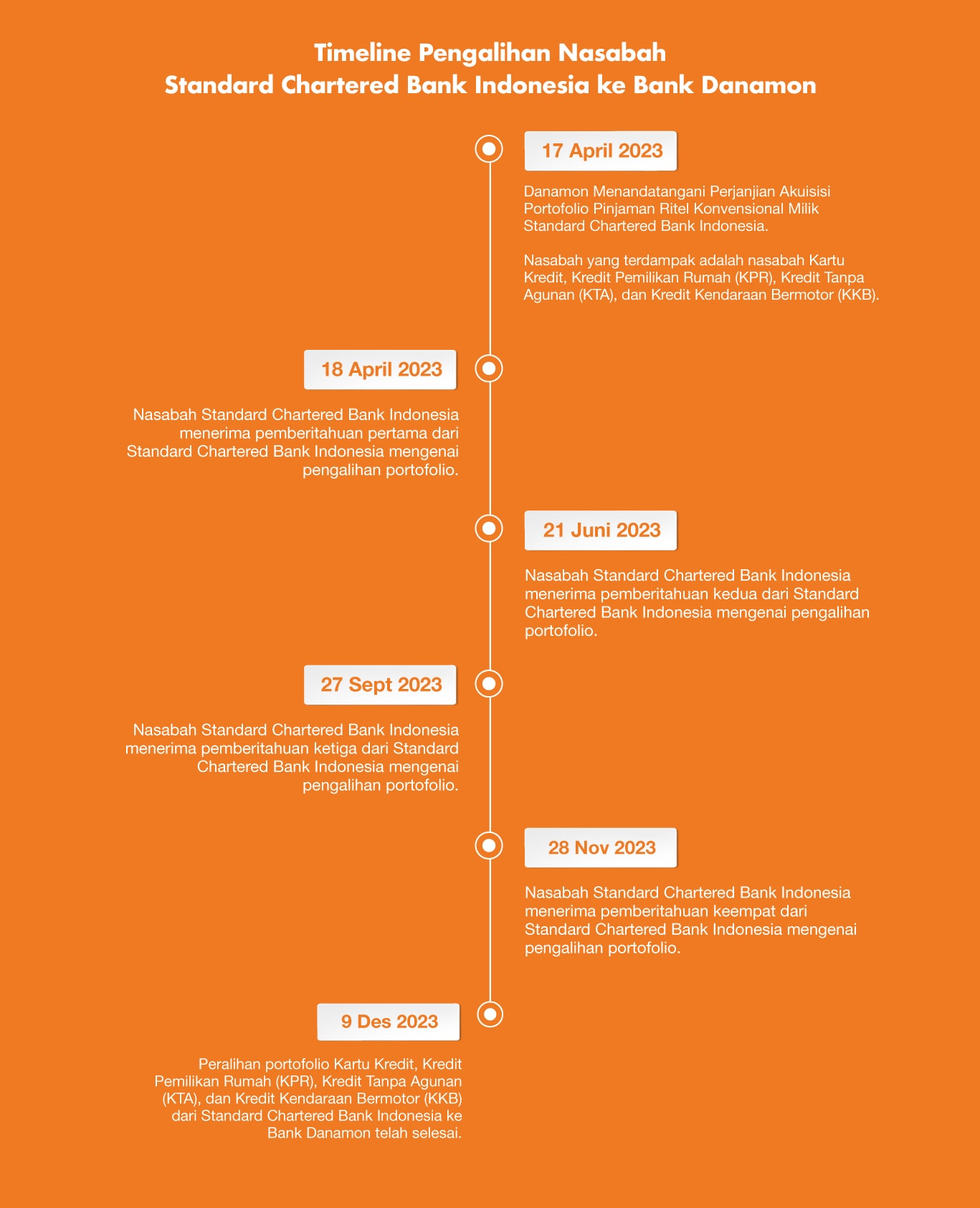 § Proses perpindahan portfolio dari Standard Chartered Bank Indonesia ke Bank Danamon direncanakan akan berjalan pada bulan November atau December 2023. |