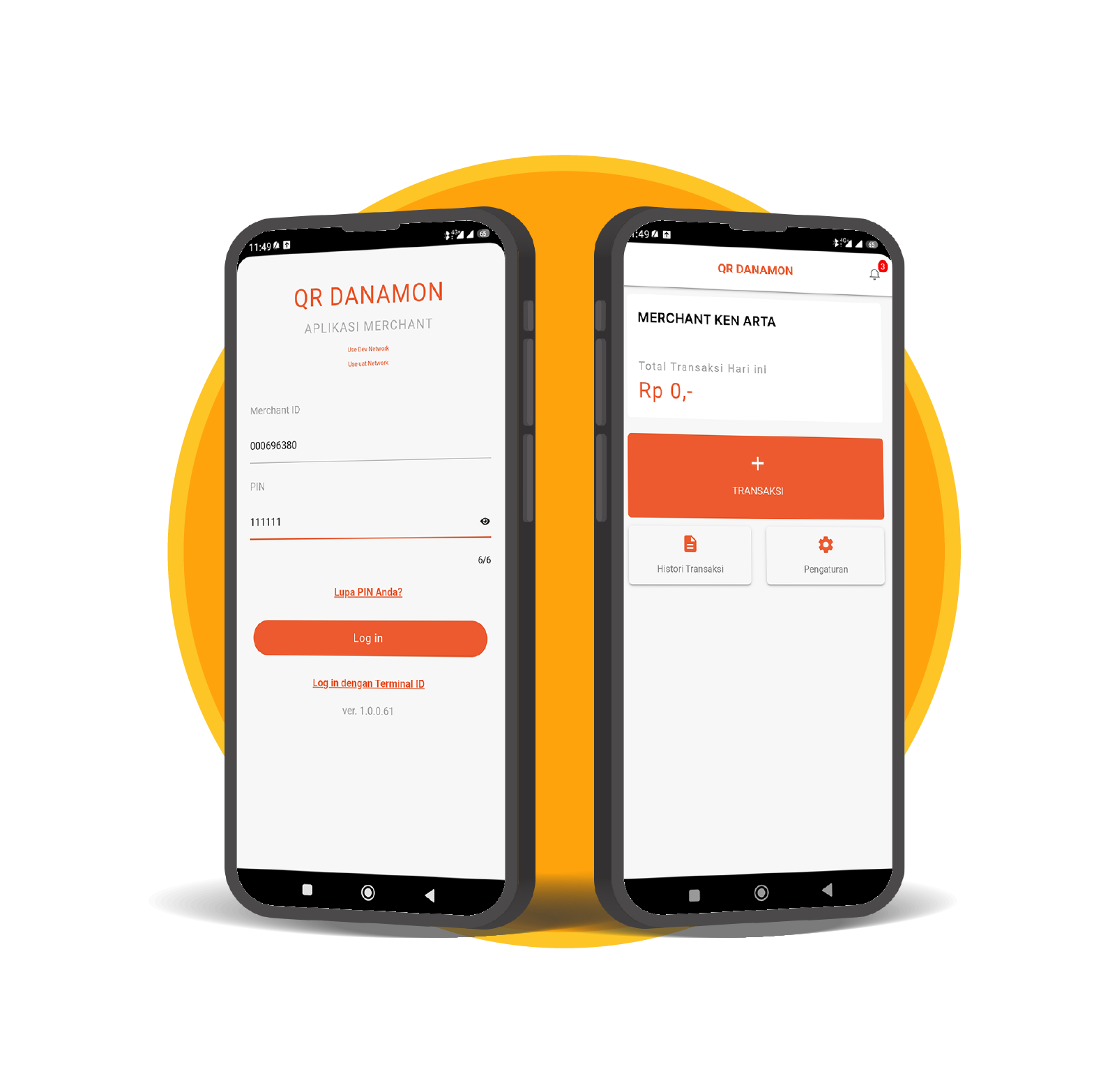 This service allows Merchants to accept digital payments using Danamon QR codes compliant with QRIS. Merchants access the Danamon QR Application on Android devices using a 10-digit Merchant ID and 6-digit PIN sent via SMS. The app supports secure, real-time payment processing and transaction management.