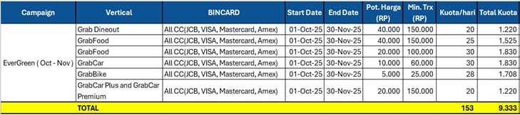 The General Terms and Conditions of Evergreen Program (“General Terms and Conditions of the Program”) are the terms and conditions applicable to customers of PT Bank Danamon Indonesia Tbk (“Bank Danamon”) who own and transact using Cards (“Cardholders”) who participate in Evergreen Program (“Program”) organized by Bank Danamon in collaboration with merchant partner PT Grab Teknologi Indonesia (“GRAB”).