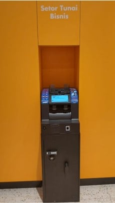 layanan setor tunai dengan mesin yang ditempatkan di area usaha Nasabah. Proses setor tunai langsung dikreditkan