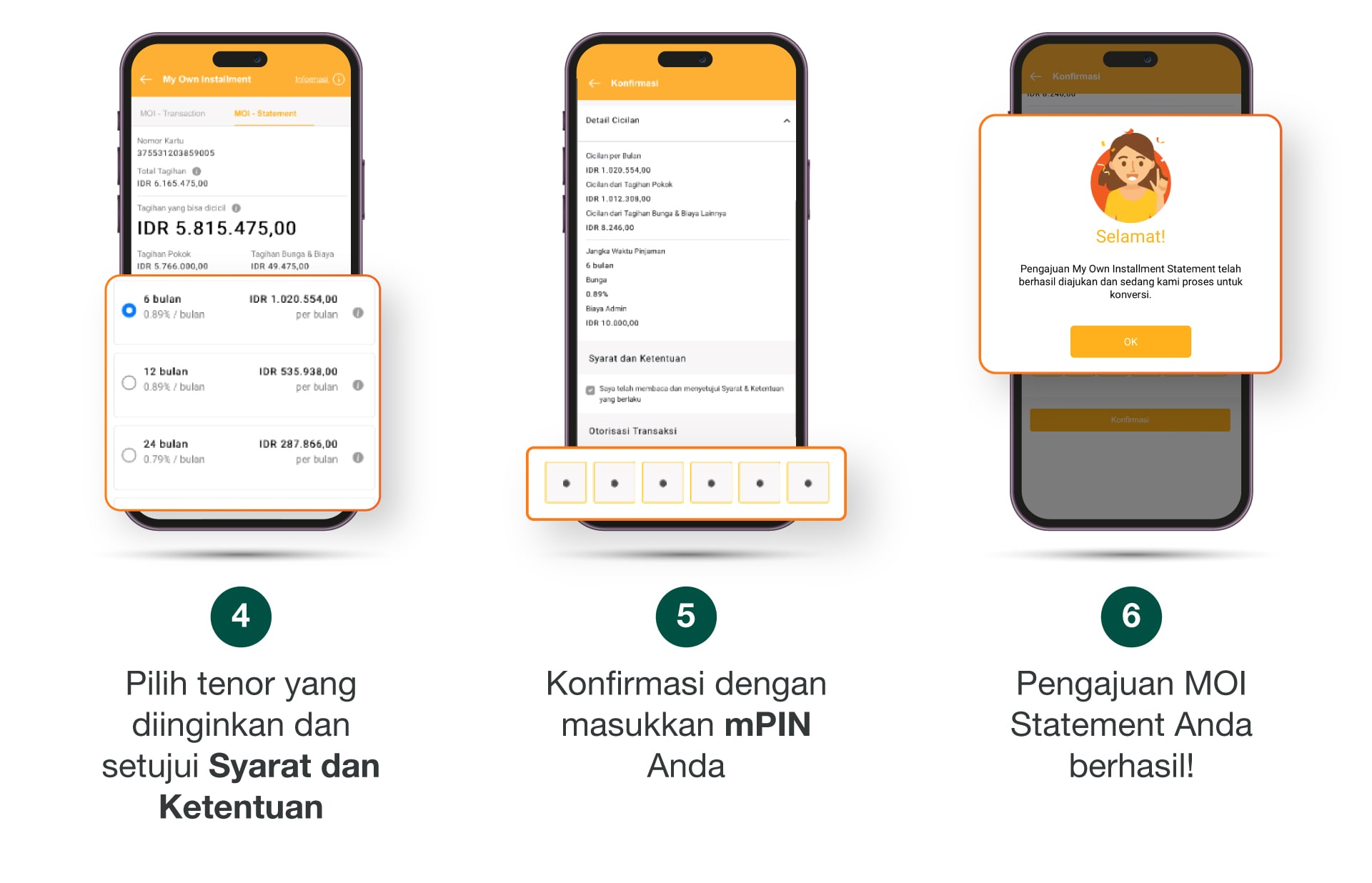 Cukup ubah tagihan bulanan Kartu Kredit Danamon Anda jadi cicilan dengan fitur MOI Statement di aplikasi D-Bank PRO.