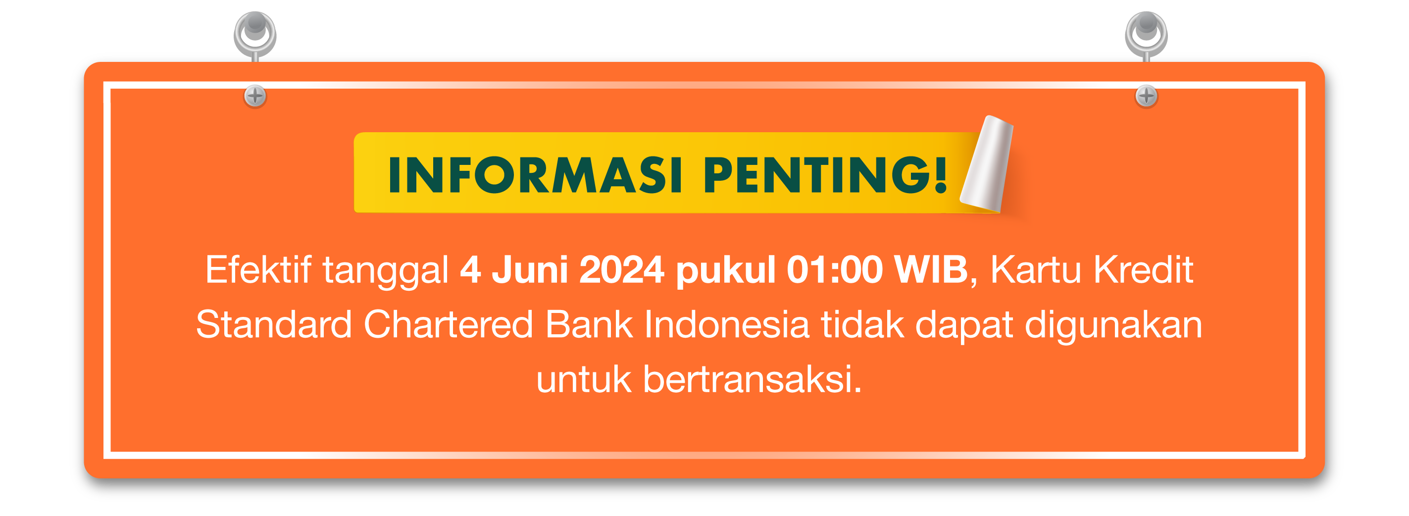 Efektif per tanggal9 Desember 2023, Kartu Kredit Standard Chartered Bank Indonesia dengan status kartu lancar atau dalam perhatian khusus (tingkat kolektibilitas SLIK 1 dan 2) yang akan dialihkan ke Danamon. Untuk informasi terkait status kolektibilitas SLIK dapat mengujungihttps://idebku.ojk.go.id |