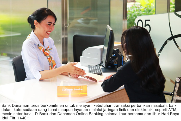 Chief Operations Officer Bank Danamon, Evi Damayanti mengatakan, “Segenap keluarga Danamon mengucapkan Selamat Hari Raya Idulfitri 1440 H bagi seluruh masyarakat Indonesia yang merayakan. Dalam libur Lebaran serta cuti bersama tahun ini, Danamon terus berkomitmen untuk melayani kebutuhan transaksi perbankan nasabah, baik dalam ketersediaan uang tunai maupun layanan melalui jaringan fisik dan elektronik, seperti ATM, mesin setor tunai, D-Bank dan Danamon Online Banking.”