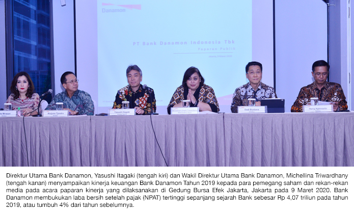 Jakarta, 9 Maret 2020. PT Bank Danamon Indonesia Tbk (“Bank Danamon” atau “Bank”) hari ini mengumumkan pencapaian selama setahun setelah investasi MUFG dan laporan keuangan untuk tahun 2019 pada Public Expose yang diselenggarakan di kantor Bursa Efek Indonesia (IDX).