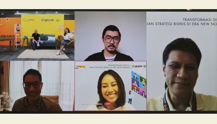 Webinar yang dihadiri oleh pelaku usaha termasuk merchant-merchant Gojek mengangkat topik “Transformasi Digital dan Strategi Bisnis di Era New Normal” dan menghadirkan narasumber Wisnu Wardana, Ekonom Bank Danamon, Jonathan Barki, Head of Corporate Strategy Gojek Group, dan Anthony Reza Prasetya, Co-Founder dan CEO GetCraft Indonesia.
