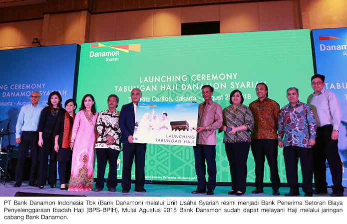 Jakarta, 20 Agustus 2018 – PT Bank Danamon Indonesia Tbk (“Bank Danamon”) melalui Unit Usaha Syariah telah resmi menjadi Bank Penerima Setoran Biaya Penyelenggaraan Ibadah Haji (BPS-BPIH). Mulai bulan Agustus 2018 Bank Danamon sudah dapat melayani pendaftaran haji melalui jaringan cabang Bank Danamon.