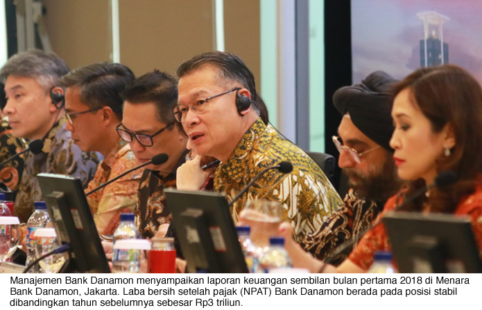 Laba bersih setelah pajak (NPAT) Bank Danamon di sembilan bulan pertama tahun 2018 berada pada posisi stabil dibandingkan dengan setahun sebelumnya sebesar Rp 3 triliun.