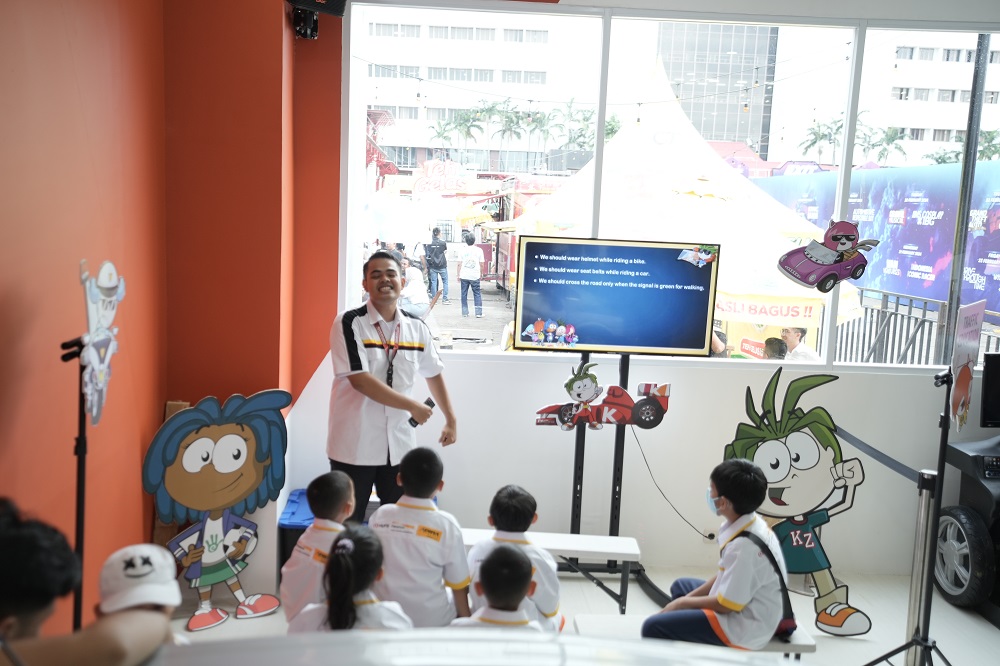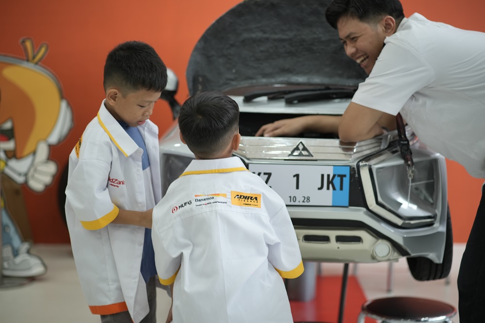 Antusiasme anak-anak saat belajar dengan tim Kidzania mengenai fungsi, cara kerja, dan perawatan komponen mobil serta peraturan lalu lintas di booth Danamon. Di IIMS 2024, Danamon menggandeng KidZania untuk mewujudkan pengalaman belajar sambil bermain bagi anak-anak pengunjung berupa pengenalan kepada literasi otomotif dan finansial dasar.