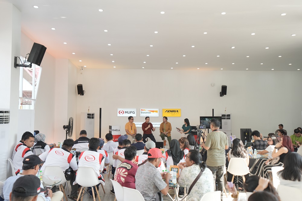 Suasana pengunjung yang menghadiri talkshow Studio Finansial bertema “Bukan Cuma Soal Ngaspal yang Perlu Optimal” pada hari Selasa (20/02/24). Pembicara pada talkshow ini adalah (kiri ke kanan) Edwin Kartawinata, Head of Digital Business PT Adira Dinamika Multi Finance, Tbk; Bryan Octavianus - Proposition Head PT Bank Danamon Indonesia Tbk; Chef Norman Ismail, influencer di bidang Kuliner dan Otomotif. Talkshow yang dibawakan oleh MC Mega Latu ini mengajak para pembicara untuk sharing tentang bagaimana hobi dapat menjadi sumber penghasilan dan cara mengatur finansial untuk mewujudkan optimal living, di mana tabungan yang dimiliki optimal namun kebutuhan dan hobi dapat terpenuhi.
