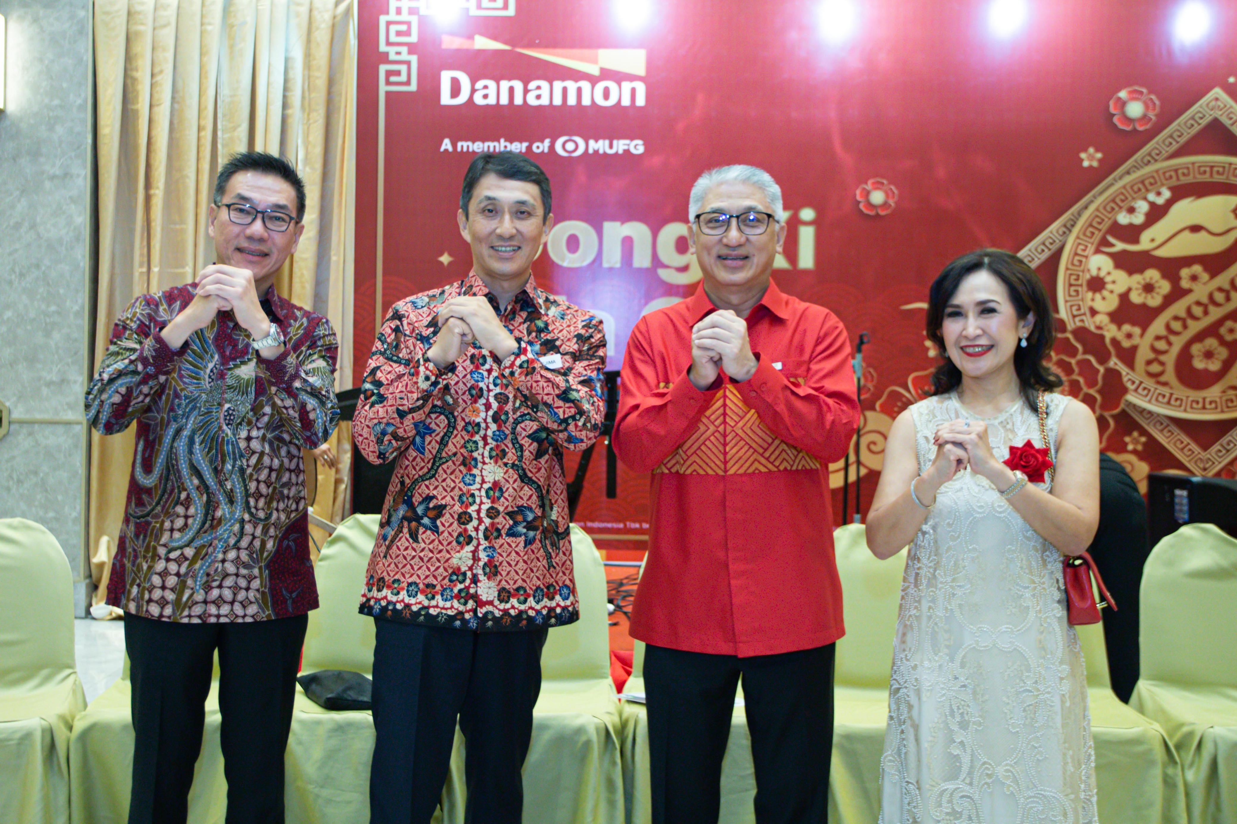 D. Ejima, Direktur Utama, PT Bank Danamon Indonesia Tbk (dua dari kiri), Honggo Widjojo Kangmasto, Wakil Direktur Utama, PT Bank Danamon Indonesia Tbk (dua dari kanan), Rita Mirasari, Direktur Kepatuhan, PT Bank Danamon Indonesia Tbk (kanan), dan Thomas Sudarma, Direktur Enterprise Banking & Financial Institutions, PT Bank Danamon Indonesia Tbk (kiri) turut hadir pada Perayaan Chinese New Year Dinner PT Bank Danamon Indonesia Tbk pada Senin, 3 Februari 2025 bertempat di Ballroom Angke Heritage, PIK 2. Rangkaian perayaan Chinese New Year Dinner yang mengundang nasabah dari segmen Enterprise Banking & Financial Institution, SME Banking, dan Consumer Banking adalah bentuk customer loyalty program bagi nasabah setia Danamon. Danamon menyelenggarakan serangkaian perayaan Chinese New Year Dinner di 11 region Danamon mulai dari 3 Februari 2025 sampai dengan 11 Februari 2025.