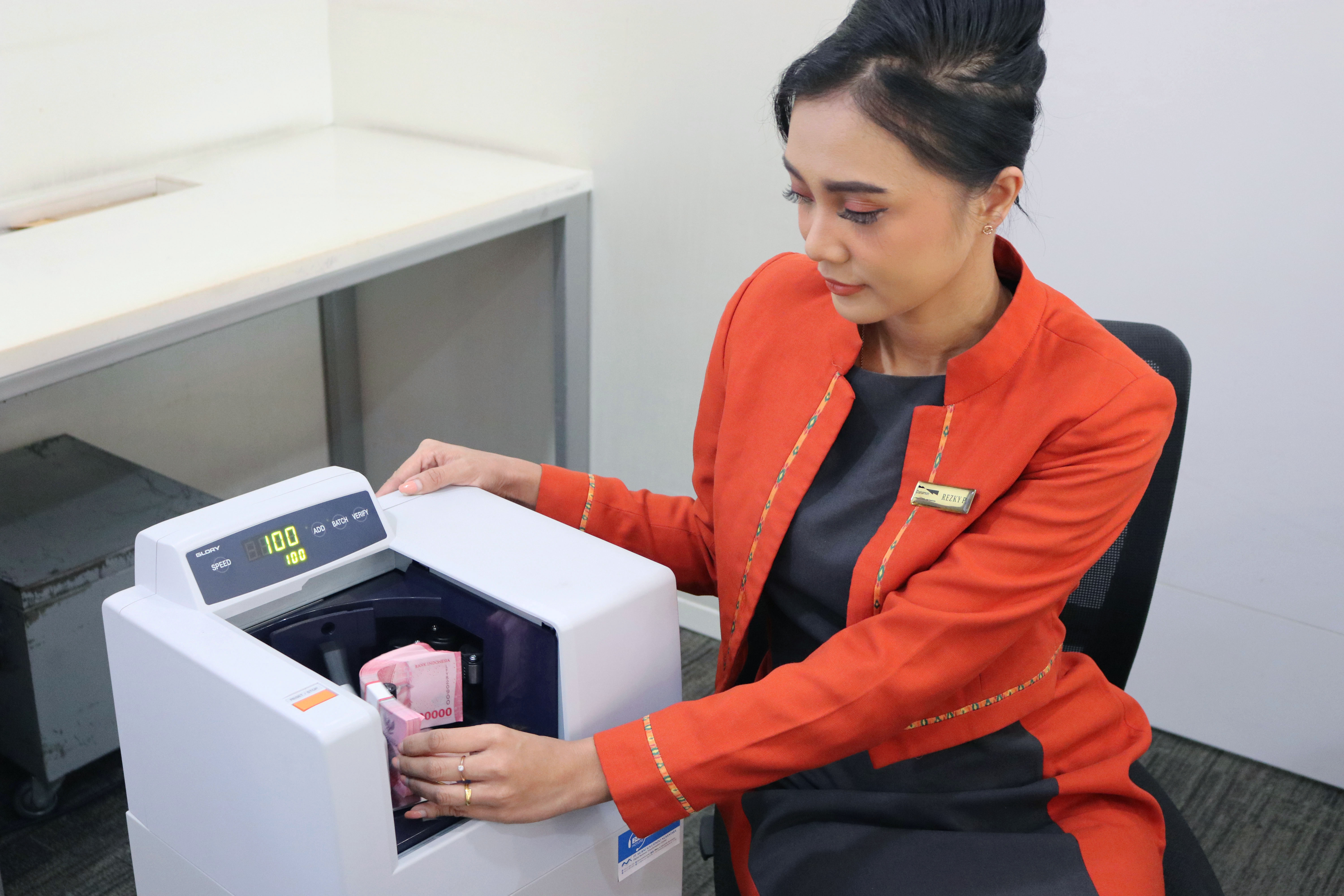 Teller Danamon sedang melayani transaksi Nasabah di Kantor Cabang Menara Bank Danamon