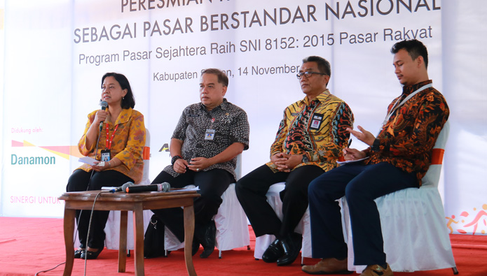 “Danamon Peduli secara khusus mengambil peran sebagai mitra pemerintah dalam merevitalisasi pasar rakyat. Pada dasarnya kami saling mengisi dan melengkapi program kerja pemerintah yang fokus pada pengembangan pasar. Kami mendukung dikeluarkannya SNI 8152:2015 Pasar Rakyat oleh Badan Standardisasi Nasional dan mengimplementasikannya di program Pasar Sejahtera, sebagai upaya bersama dalam mewujudkan pasar rakyat yang siap berkompetisi dan tidak hanya mumpuni sebagai tonggak perekonomian, namun siap menunjang aspek penting lain seperti sosial, budaya dan pariwisata daerah,” jelas Restu Pratiwi, Ketua Umum Yayasan Danamon Peduli.