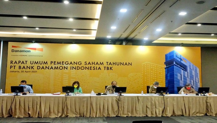 Rapat Umum Pemegang Saham Tahunan (RUPST) PT Bank Danamon Indonesia Tbk. (Perseroan) yang dilaksanakan pada hari ini antara lain menyetujui pembayaran dividen tahun buku 2020, Laporan Tahunan serta Laporan Keuangan Perseroan tahun buku 2020, pengesahan Laporan Tugas Pengawasan Tahunan Dewan Komisaris Perseroan untuk tahun buku yang berakhir pada tanggal 31 Desember 2020, pemberian pembebasan dan pelunasan tanggung jawab sepenuhnya (“volledig acquit et décharge”) kepada Direksi dan Dewan Komisaris Perseroan, penetapan penggunaan laba Perseroan untuk tahun buku yang berakhir pada 31 Desember 2020, Penunjukan Akuntan Publik dan Kantor Akuntan Publik untuk tahun buku 2021, perubahan komposisi anggota Dewan Komisaris perseroan dan persetujuan pengkinian dokumen rencana aksi (Recovery Plan) 2020-2021.