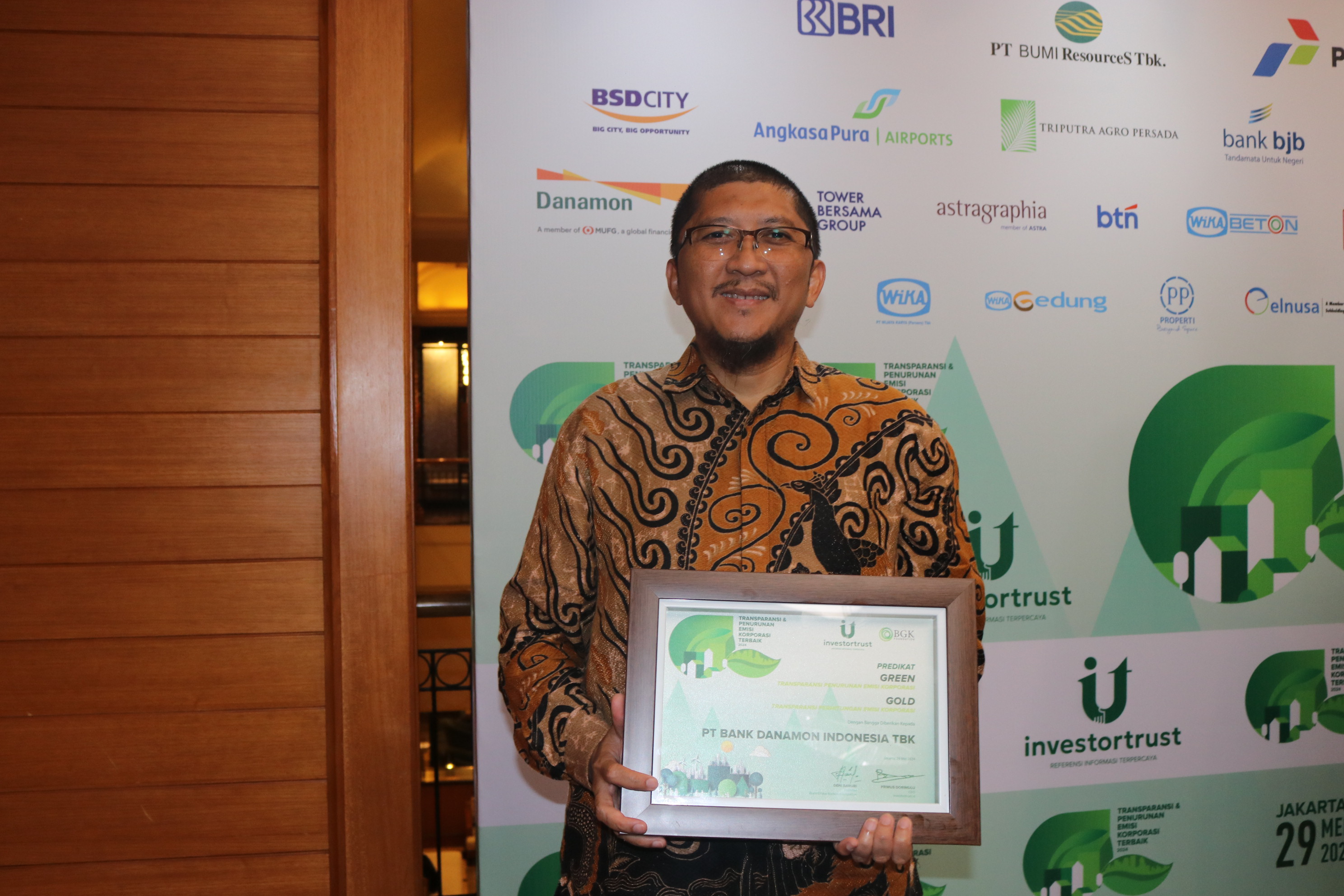 Danamon menerima penghargaan pada ajang TRANSPARANSI & PENURUNAN EMISI KORPORASI TERBAIK 2024 oleh Investortrust dan BGK Foundation