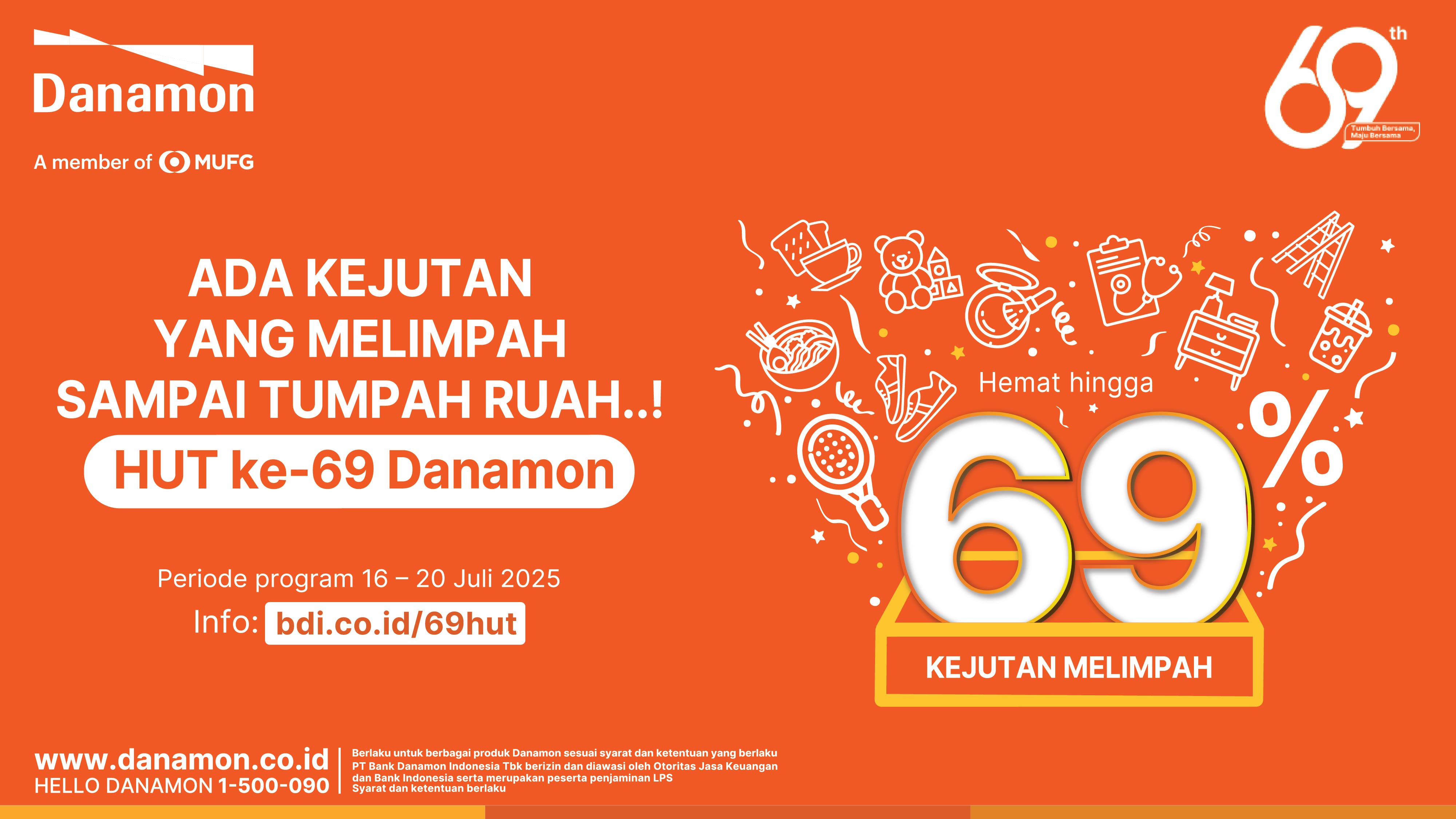 Informasi lebih lanjut mengenai program spesial dalam rangka HUT ke-69 Danamon dapat diakses melalui bdi.co.id/69hut.