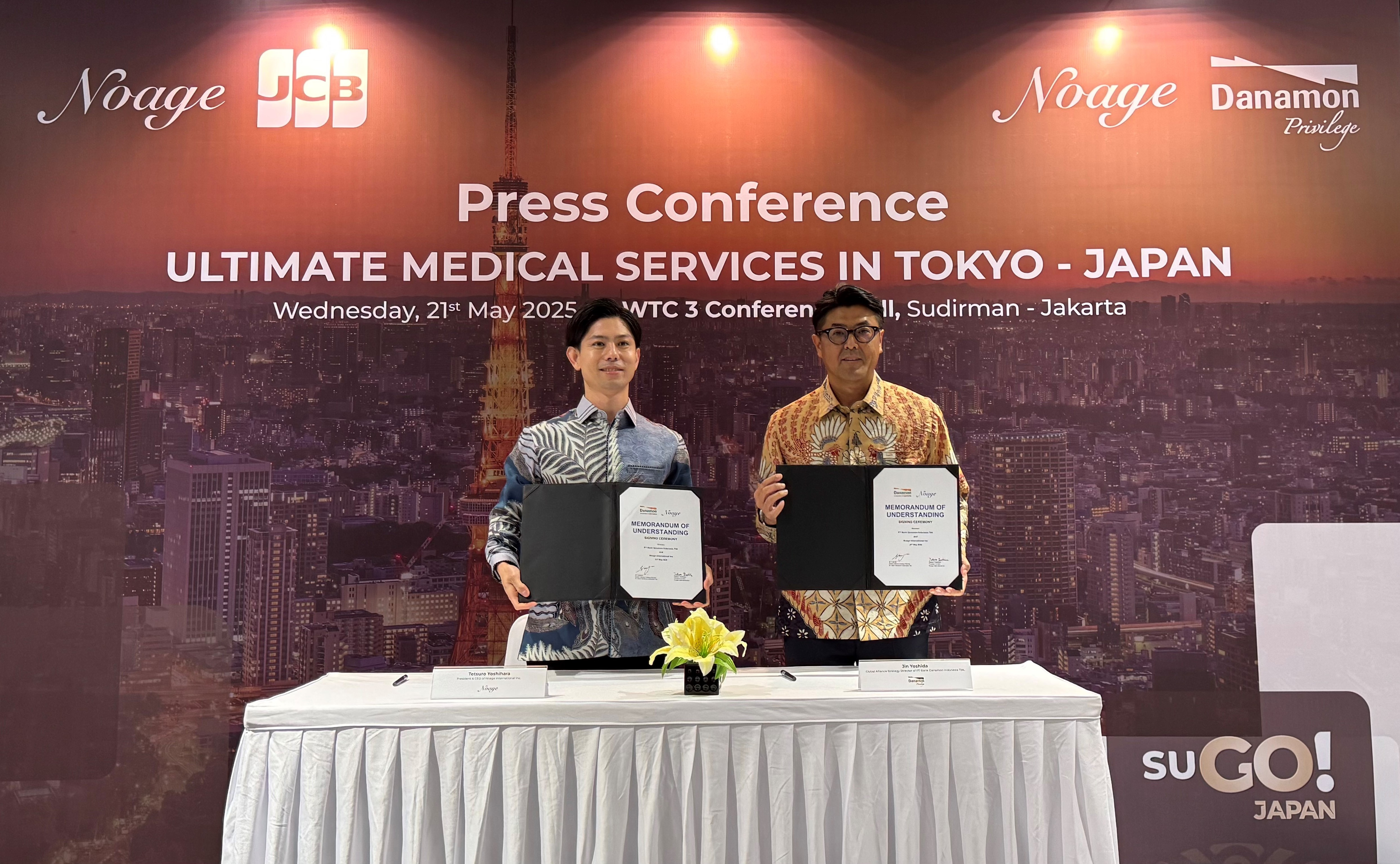 TOKYO // JAKARTA, 21 Mei 2025 – JCB International Co., Ltd., anak perusahaan untuk operasional internasional dari JCB Co., Ltd., satu-satunya merek pembayaran internasional Jepang (Kantor Pusat: Minato-ku, Tokyo; Presiden dan CEO: Takayoshi Futae) (selanjutnya, ketiga perusahaan secara kolektif disebut sebagai "JCB".) telah menandatangani Nota Kesepahaman dengan Noage International Inc. (Kantor Pusat: Minato-ku, Tokyo; Presiden & CEO: Tetsuro Yoshihara) (selanjutnya "NI") yang mengoperasikan bisnis medis dan pemeriksaan kesehatan, untuk memperluas "Program Wisata Medis Eksklusif JCB" untuk mempromosikan pariwisata medis tingkat lanjut ke Jepang bagi segmen premium Indonesia,yang telah ditawarkan sejak tahun 2023. Program ini dirancang untuk mempromosikan pariwisata medis tingkat lanjut ke Jepang bagi segmen premium Indonesia.