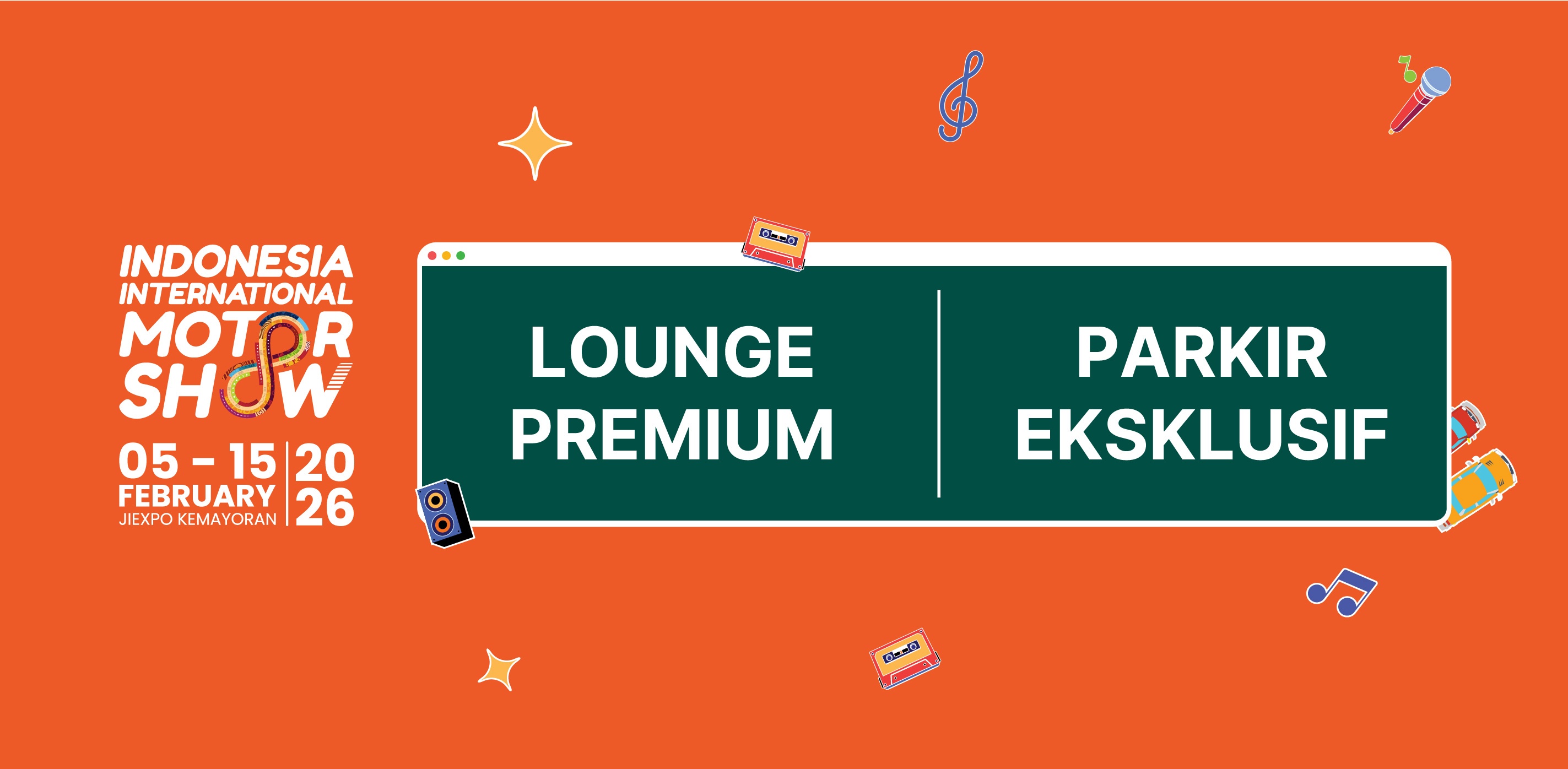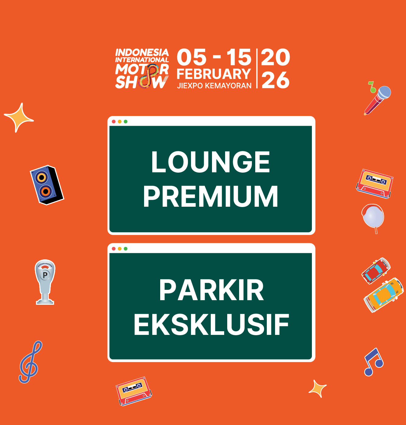 - Peserta dapat menggunakan fasilitas area parkir eksklusif yang berada di area Parkir Timur dan area Parkir Barat JIExpo Kemayoran.