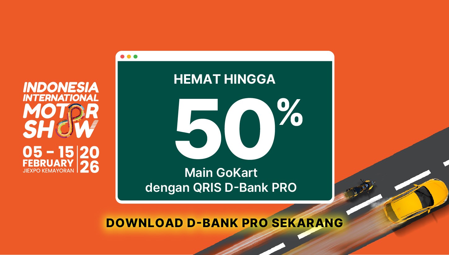 - Untuk Program ini, Nasabah dapat memperoleh diskon 50% (lima puluh persen) hingga Rp 25.000 (dua puluh lima ribu Rupiah) (“Diskon”) untuk pembelian 1 (satu) tiket GoKart di IIMS Jakarta dengan QRIS Source of Fund Kartu Debit (“QRIS Debit”) dan/atau QRIS Source of Fund Kartu Kredit (“QRIS CC”) (“Transaksi”).