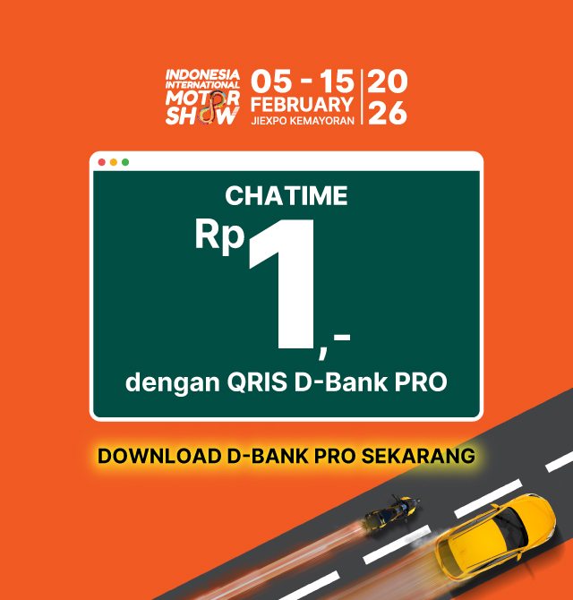 - Untuk Program ini, Nasabah dapat memperoleh segelas Chatime seharga Rp1 (satu Rupiah) di booth Chatime menggunakan QRIS Source of Fund Kartu Debit (“QRIS Debit”) atau QRIS Source of Fund Kartu Kredit (“QRIS CC”) di D-Bank PRO (“Transaksi”). Untuk dapat mengikuti program ini, Nasabah wajib menunjukkan bukti Transaksi di merchant IIMS menggunakan QRIS Debit atau QRIS CC dengan minimal transaksi Rp 25.000 (dua puluh lima ribu Rupiah) pada aplikasi D-Bank PRO (“Bukti Transaksi”).