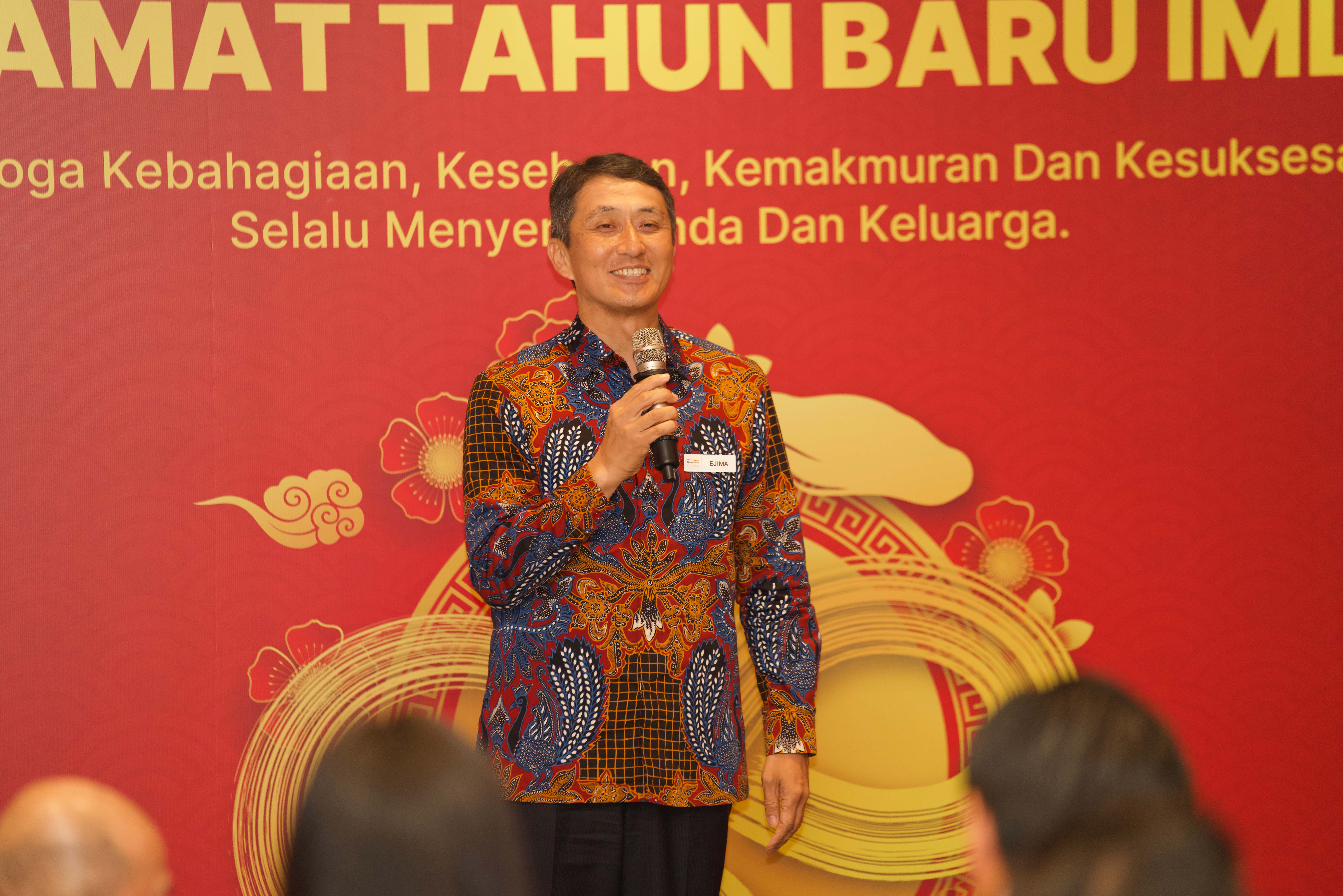 D. Ejima, Direktur Utama, PT Bank Danamon Indonesia Tbk, Memberikan Sambutan Pembuka pada Acara Chinese New Year Dinner yang dihadiri oleh Nasabah Korporasi dan Ritel Danamon.