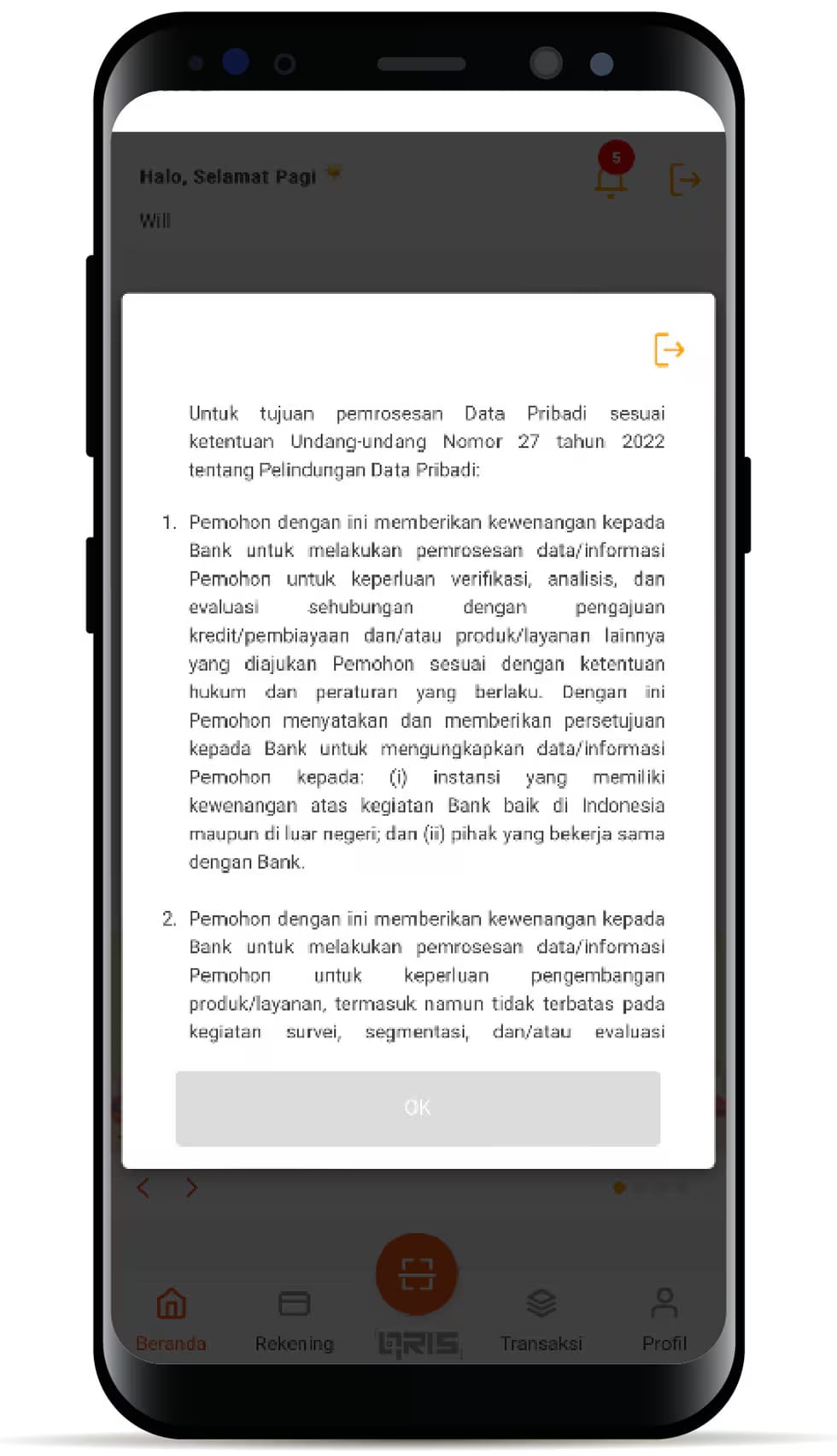 3. Muncul tampilan informasi “Pemberitahuan Privasi” dan permintaan “Persetujuan Pemrosesan Data Pribadi” terbaru.